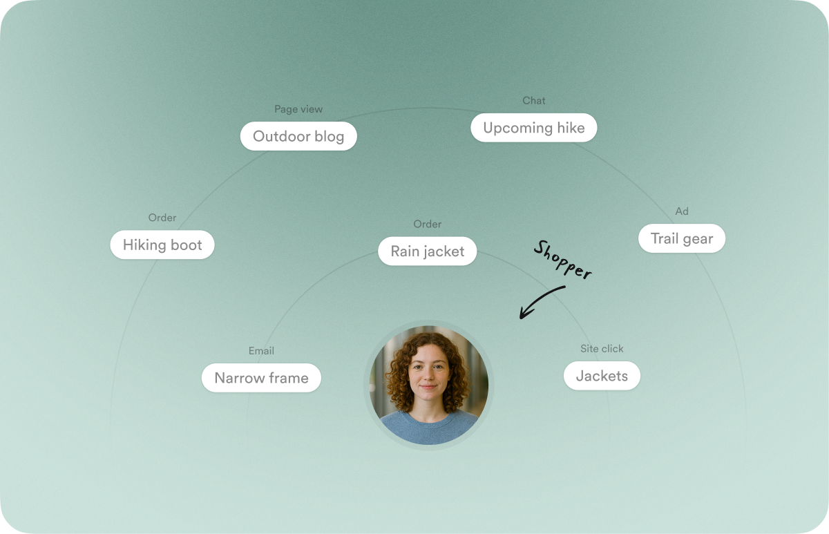 Every shopper brings unique preferences, motivations, and habits to your store — and Shoppers brings them into focus. By analyzing site activity, conversation history, and past orders, Shoppers uncovers the attributes and patterns that define each individual — whether it’s sizing preferences, hobbies, or even details like pet or vehicle ownership — giving you a sharper view of who your customers really are.